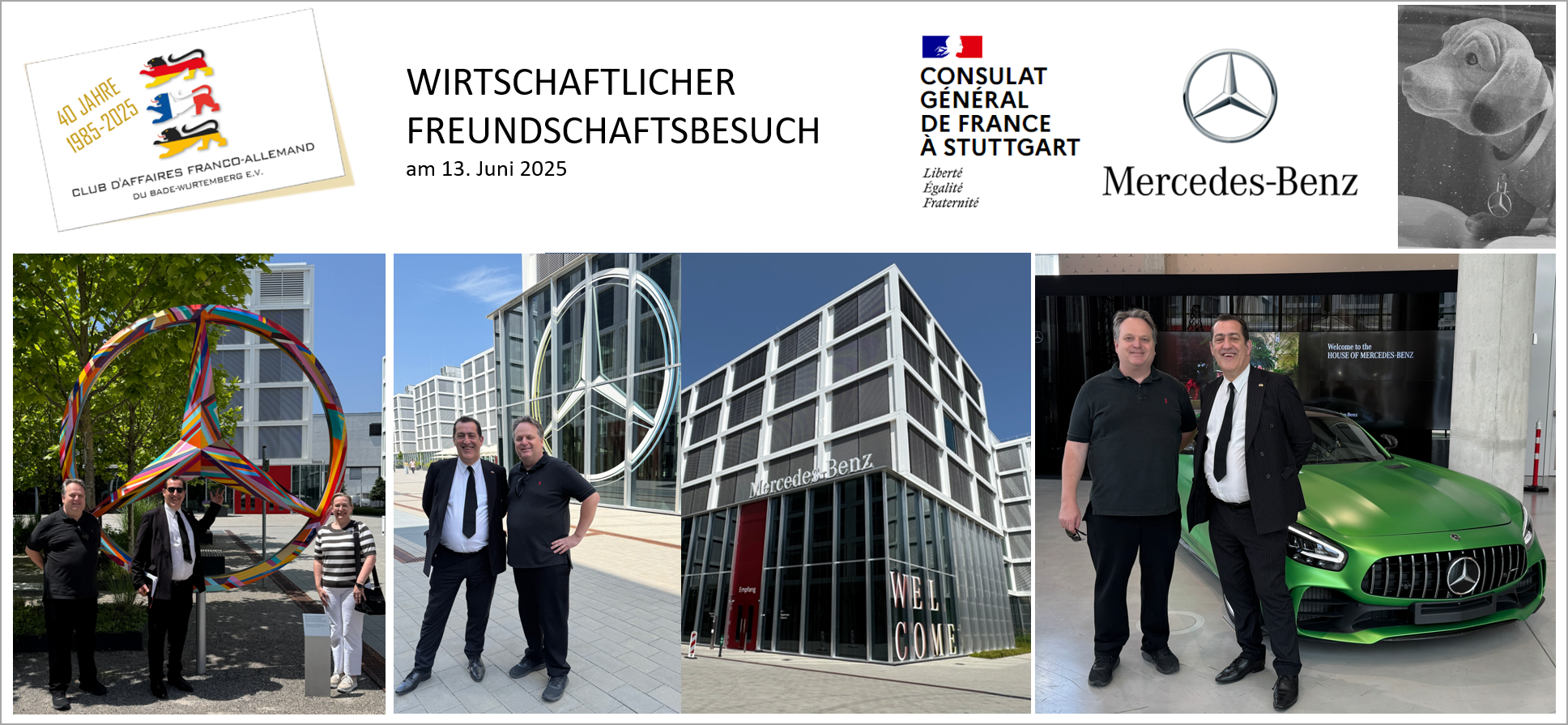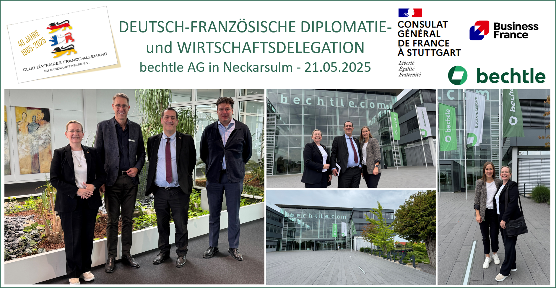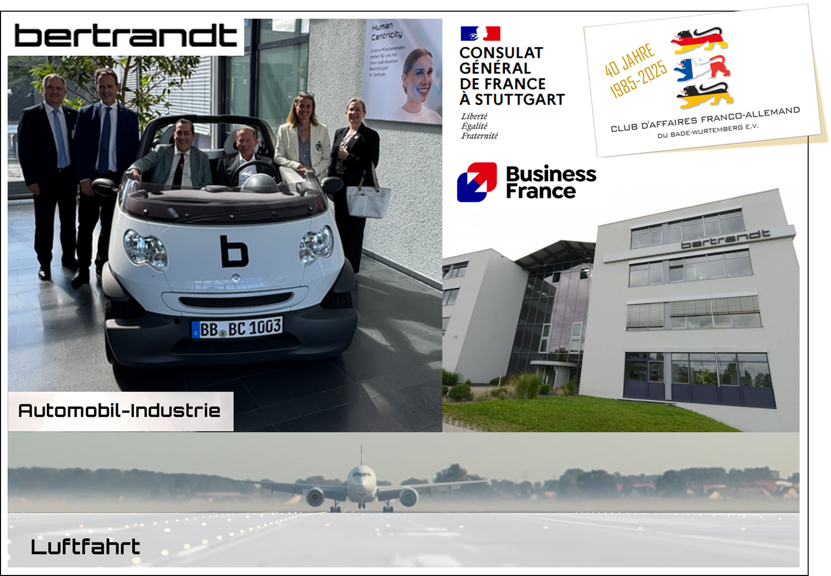 Im Rahmen einer Reihe von Treffen bei baden-württembergischen Unternehmen in Frankreich besuchten der Club d´affaires, vertreten durch seine beiden Präsidenten Céline Eheim und Jörg Luft, sowie der Schirmherr des Club d´affaires, der französische Generalkonsul für Baden-Württemberg, Gaël de Maisonneuve, und Frédéric Bouquet von Business France das Unternehmen Bertrandt südlich von Stuttgart.