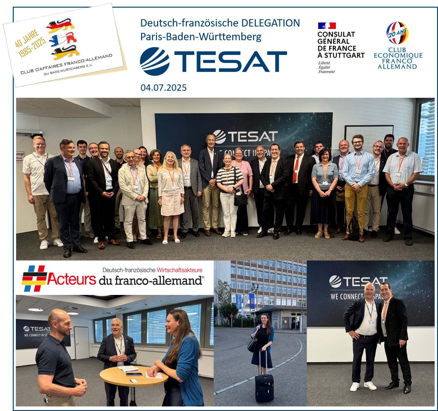 Vor der Ankunft der Delegation konnte Verena Schad, Journalistin des Mediums Acteurs du franco-allemand, Dr. Siegbert Martin, CTO Tesat Spacecom, für die deutsch-französische Sonderausgabe 2025 (Veröffentlichung im November 25) über die Attraktivität Baden-Württembergs und die Wirtschaftsbeziehungen Frankreich-Baden-Württemberg interviewen.