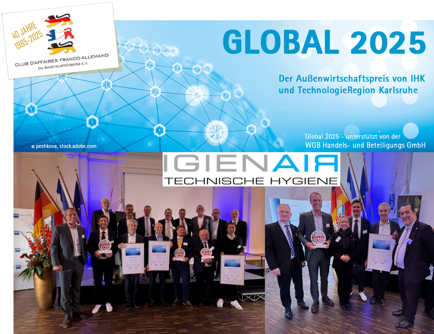 Der Club d´affaires hat sich sehr gefreut, als Jury bei Global 2025 mitgewirkt zu haben, das in diesem Jahr französische Unternehmen mit Sitz in der Region würdigte. Es war eine große Ehre für unser Mitglied Igienair GmbH, diese Auszeichnung zu erhalten.